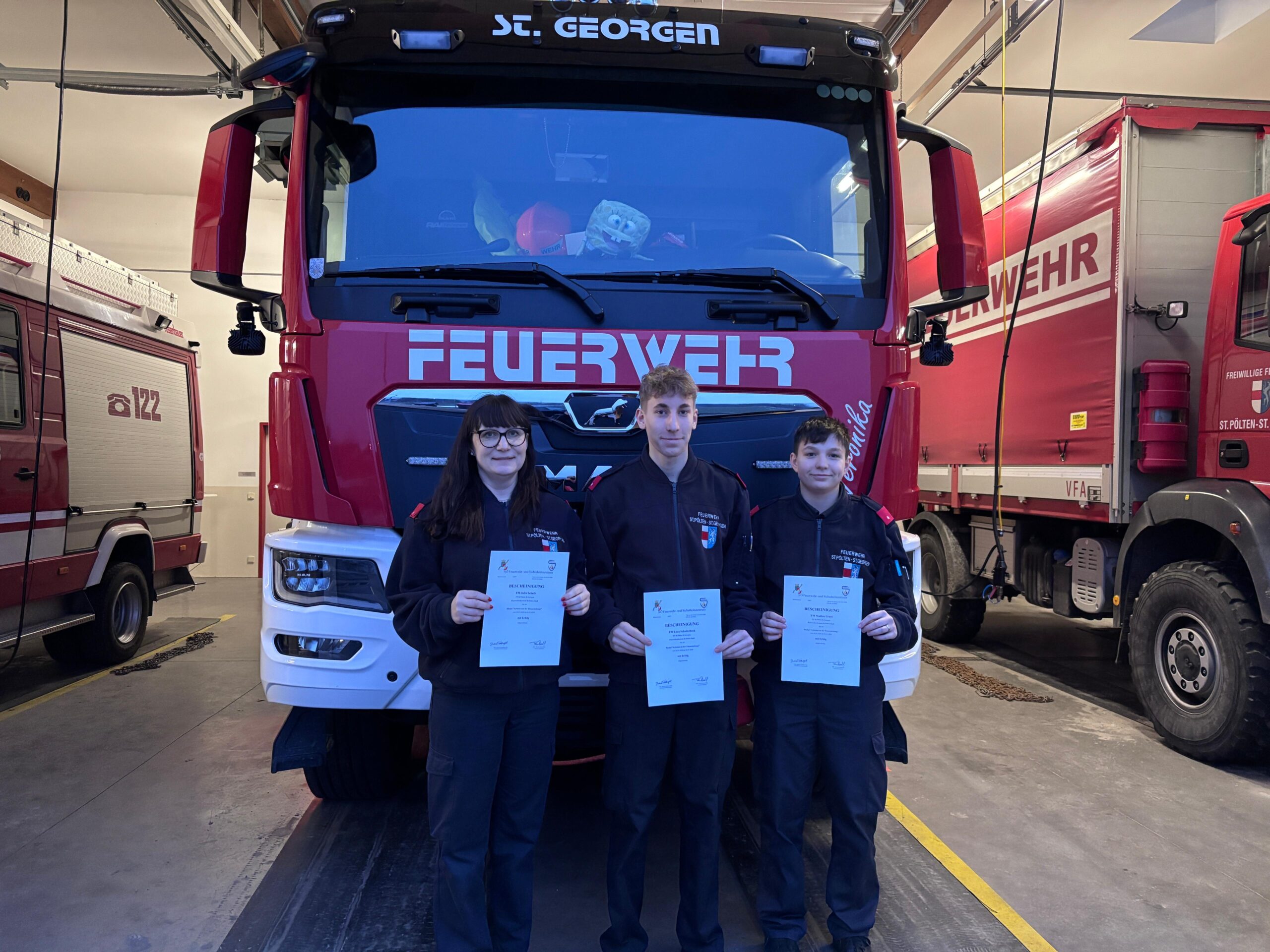 Julia Schulz, Madlen Urani und Luca Schoderbeck absolvierten heute das Modul Arbeiten in der Einsatzleitung. Die Kameraden gratulieren den neuen Funkern und auch Stefan Schoisengeier