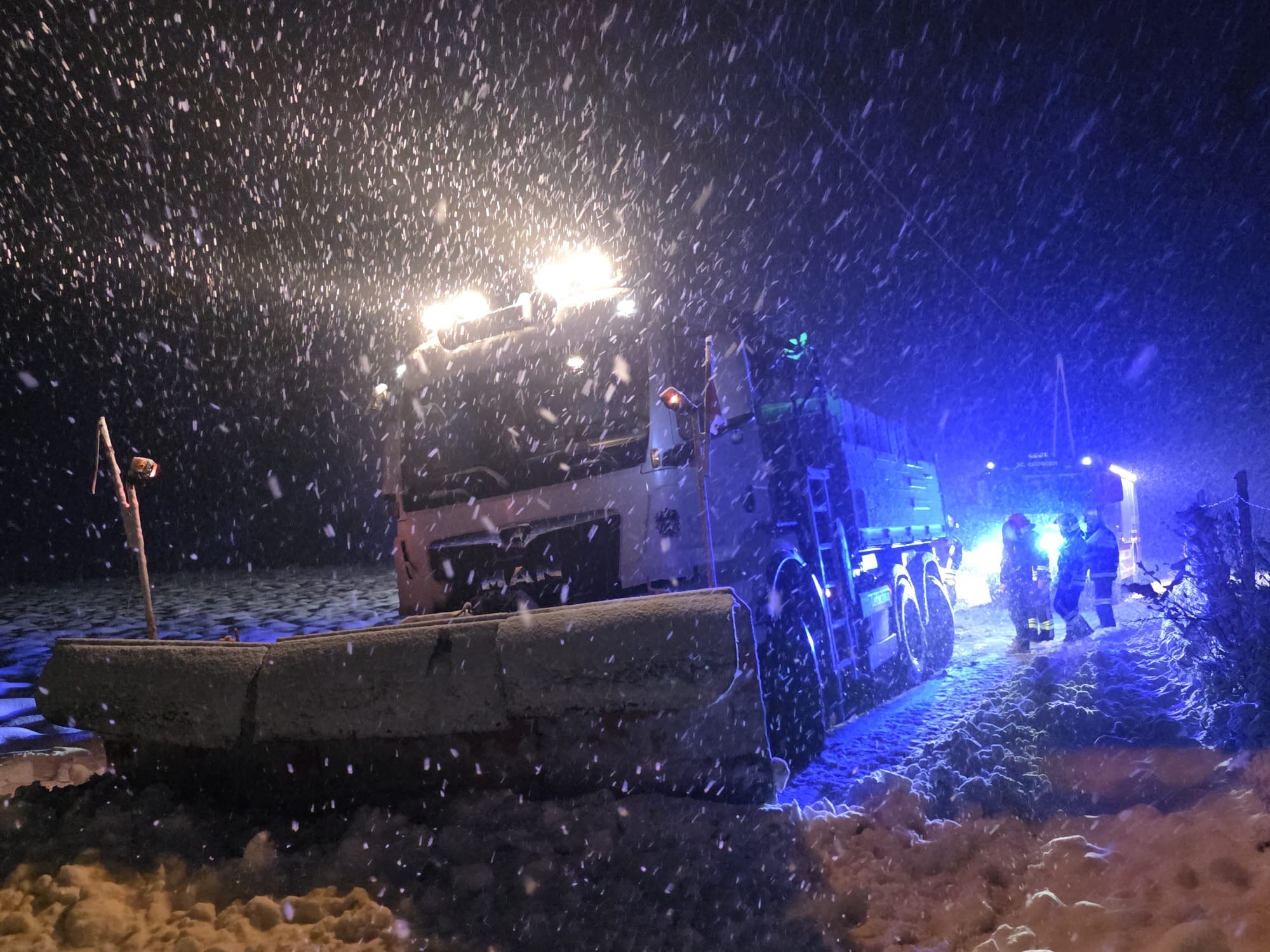 Ein Schneepflug, der im Dauereinsatz versuchte, die enormen Schneemassen zu beseitigen, blieb selbst im Schnee bzw. Schlamm stecken. Trotz intensiver Bemühungen des Fahrers grub sich das Fahrzeug immer tiefer in die aufgeweichte Schneedecke ein. Ein eigenständiges Freikommen war nicht mehr möglich.